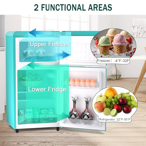 Compact Fridge with Freezer Retro Mini Fridge with Freezer for Bedroom, 2-Door Retro Fridge Compact Refrigerator with Adjustable Thermstat, 3.9 Cu. Ft. Mini Fridge Vintage Fridge for Dorm Office(Blue)