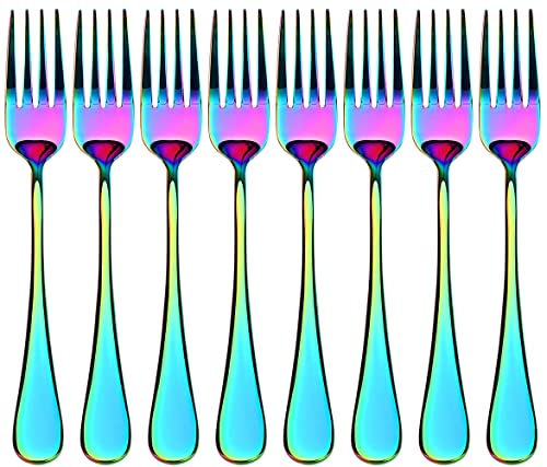 Colorful Salad Forks Set of 8, Stainless Steel Rainbow Dessert Forks, 8-Piece Iridescent Silverware Flatware Fork, Mirror Finish and Dishwasher Safe, 6.8-Inch