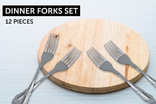 DecorRack 12 pieces Dinner Forks, Food Grade Quality Stainless Steel Forks, 7.5 inches, Flatware Table Forks, Salad Forks, for Home, Kitchen or Restaurant, Metal Silverware, Dishwasher Safe.